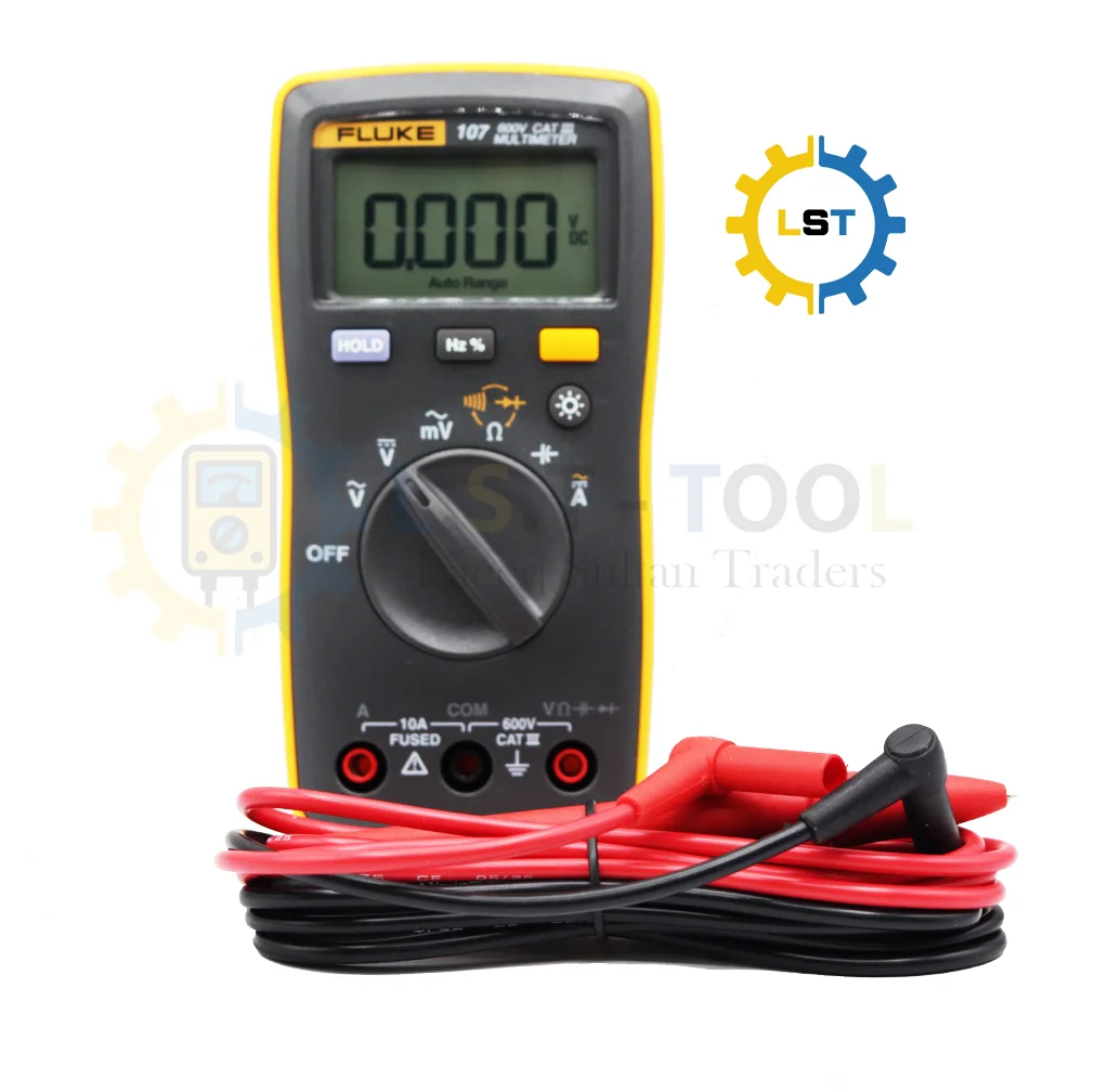 The Fluke 107 is a compact, palm size easy-to-use digital multimeter made to fit the way you work. It is the perfect first-pass troubleshooting tool; small enough to fit in a shirt pocket yet tough enough to withstand daily use, including a 1-meter drop test. For everyday applications where true-rms accuracy isn’t needed, the Fluke 107 delivers reliable measurements time after time. With a CAT III 600 V safety rating, you don’t need to compromise safety. The Fluke 107 offers a comfortable grip, weighs only 200 g, and is easy to carry.