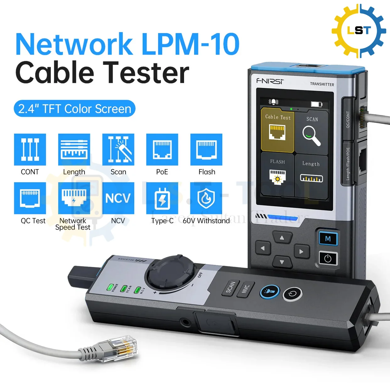- Length Measurement – One-touch cable length testing with ±3.2m accuracy over 100m.