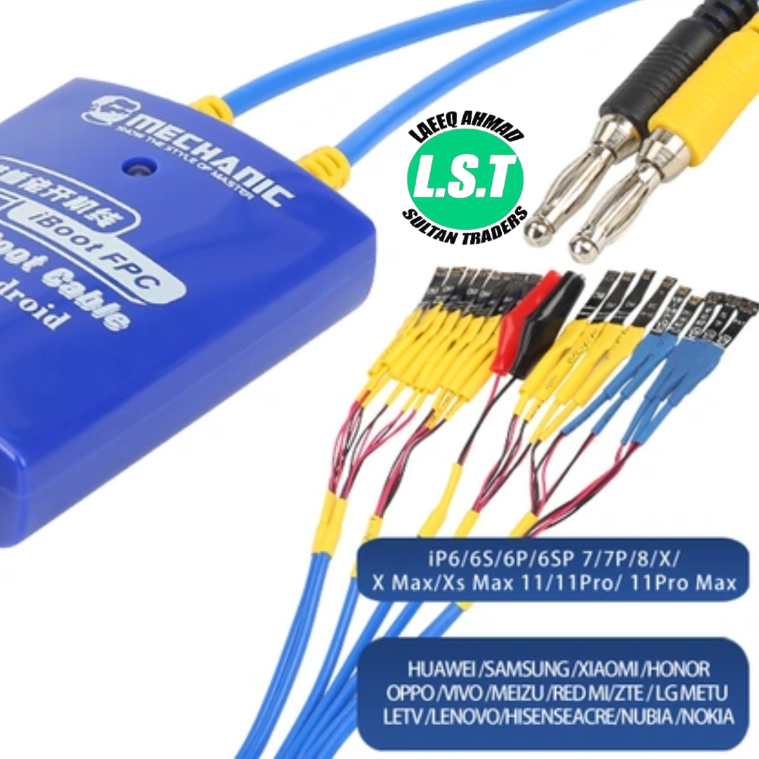 Mechanic iBoot FPC Plus Power Boot Cable supports both iOS and Android devices with over 4000 model compatibility. Features include overcurrent protection, automatic current and voltage identification, and a versatile FPC cable buckle design for various smartphones.