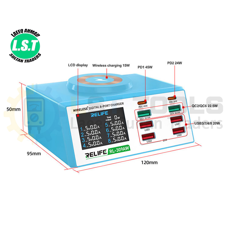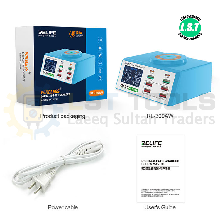 RELIFE RL-309AW Wireless digital display 8-port charger 100W