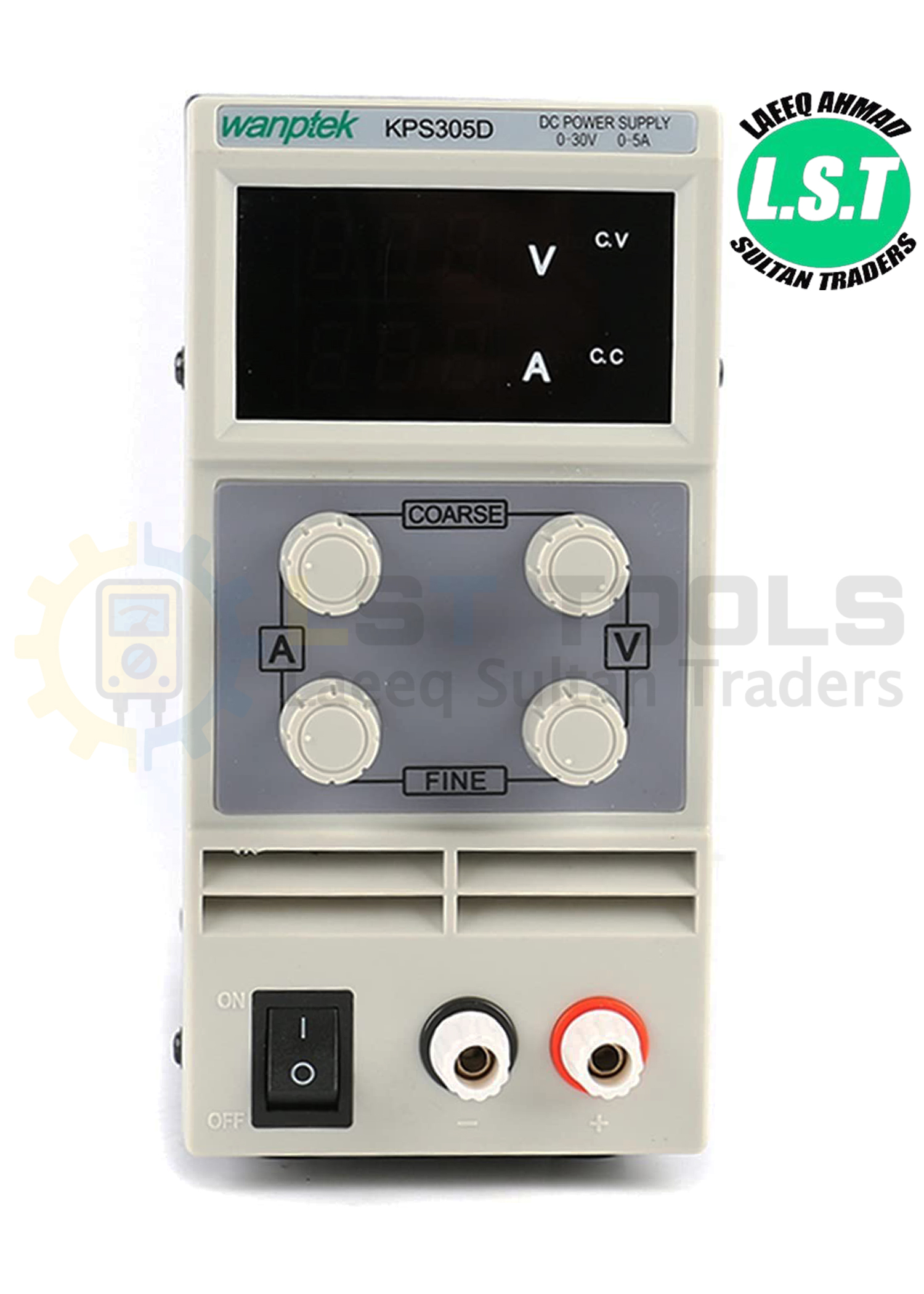 • Output: 0 – 30 V, 0 – 5 A.